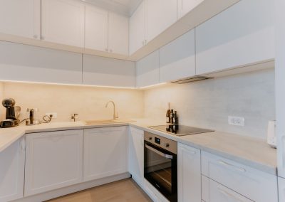 Jedes der 33 Apartments verfügt über eine eigene Terrasse oder einen Balkon mit Meerblick. Die Ausstattung umfasst moderne Küchen, Smart-Home-Technologie und Notrufsysteme. Ein Pflegeteam ist nicht dauerhaft im Haus, kann jedoch bei Bedarf auf Anfrage organisiert werden (ambulanter Pflegedienst). Die 24-Stunden-Betreuung ist dennoch gewährleistet – durch das Personal im Haus, das rund um die Uhr anwesend ist und im Notfall sofort reagiert.