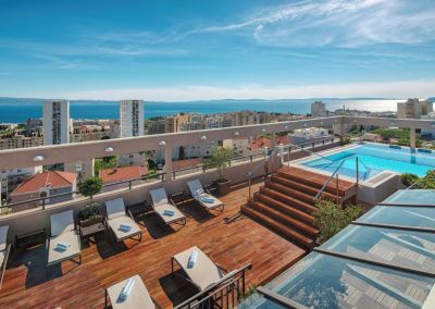 Das Haus liegt zentral in Split auf einer Anhöhe mit beeindruckendem Blick über Stadt und Meer. In wenigen Minuten erreicht man die Altstadt mit der historischen Riva-Promenade und den Strand Bačvice. Die Zimmer und Apartments sind großzügig gestaltet, hochwertig möbliert und mit großen, komfortablen Betten, barrierefreien Bädern, Notrufsystem, WLAN, Klimaanlage und Balkon ausgestattet.