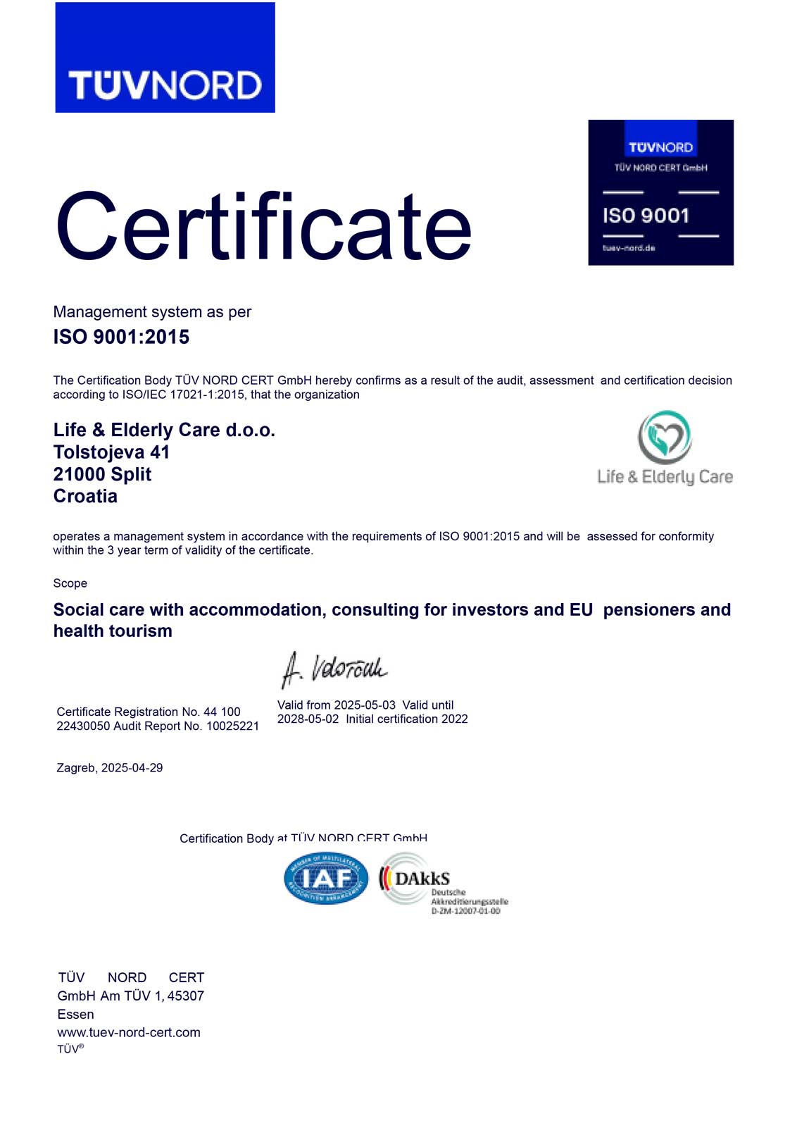 Life & Elderly Care d.o.o. is a reliable partner and coordinator in the fields of healthcare, elderly care and senior tourism – with the goal of sustainably positioning Croatia as a first-class health and rehabilitation destination in Germany.