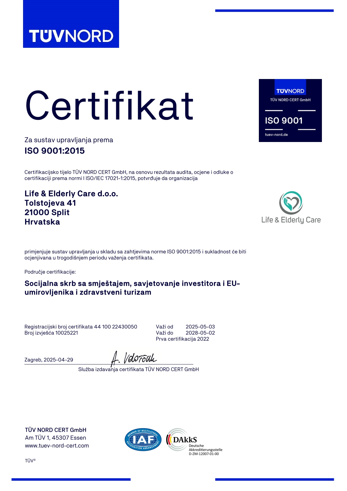 Life & Elderly Care d.o.o. pouzdan je partner i koordinator u području zdravstva, skrbi i senior turizma – s ciljem da se Hrvatska dugoročno pozicionira u Njemačkoj kao vrhunska destinacija za zdravlje i rehabilitaciju.